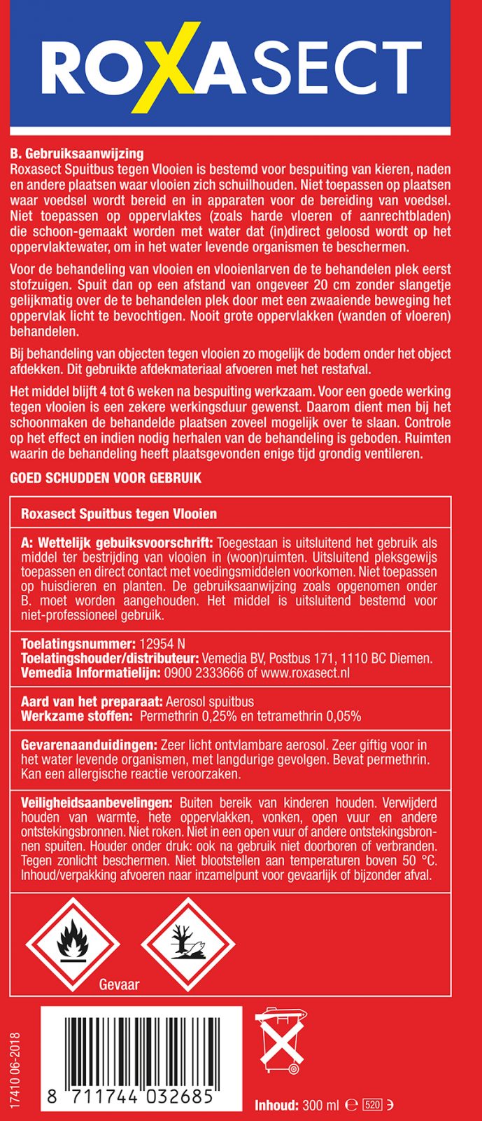 Eerst de te behandelen plek grondig stofzuigen of reinigen. Spuit dan op een afstand van ongeveer 20 cm gelijkmatig over de te behandelen plek door met een zwaaiende beweging het oppervlak licht te bevochtigen. Behandel alle schuilplaatsen achter en onder kasten, koelkasten, radiatoren en apparatuur. Het middel blijft 4 tot 6 weken werkzaam.