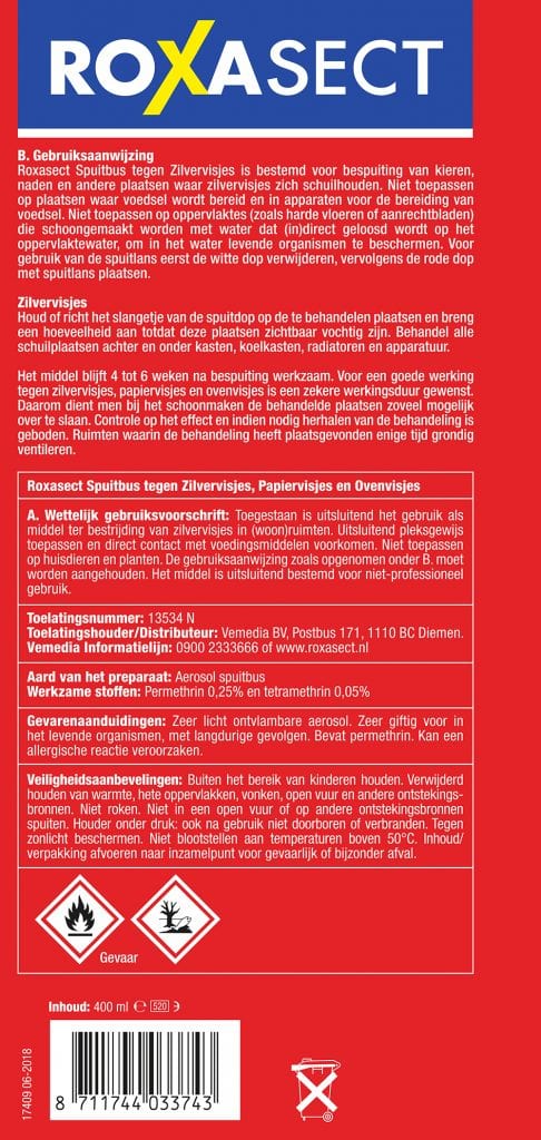 Richt het slangetje van de spuitdop op de te behandelen plaatsen en breng een hoeveelheid aan totdat deze zichtbaar vochtig zijn. Behandel alle schuilplaatsen, achter en onder kasten, koelkasten, radiatoren en apparatuur. Gebruik voor moeilijk bereikbare plaatsen, kieren en naden de meegeleverde spuitlans. Nooit grote oppervlakken behandelen. Het middel blijft 4 tot 6 weken na bespuiting werkzaam. Indien nodig de behandeling herhalen.